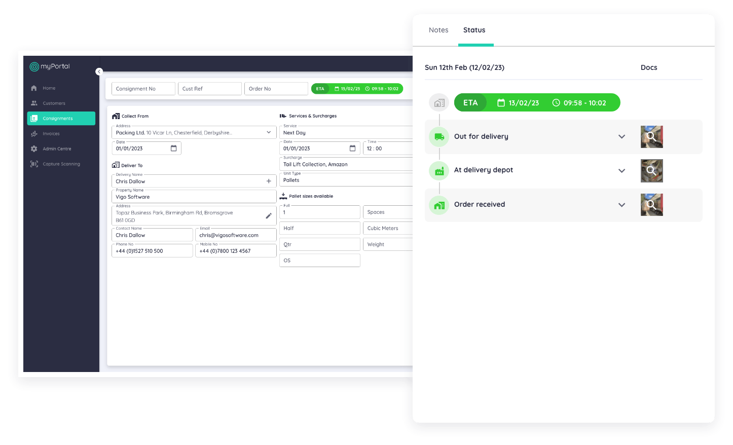• End to end consignment tracking with real time PODs and ETAs